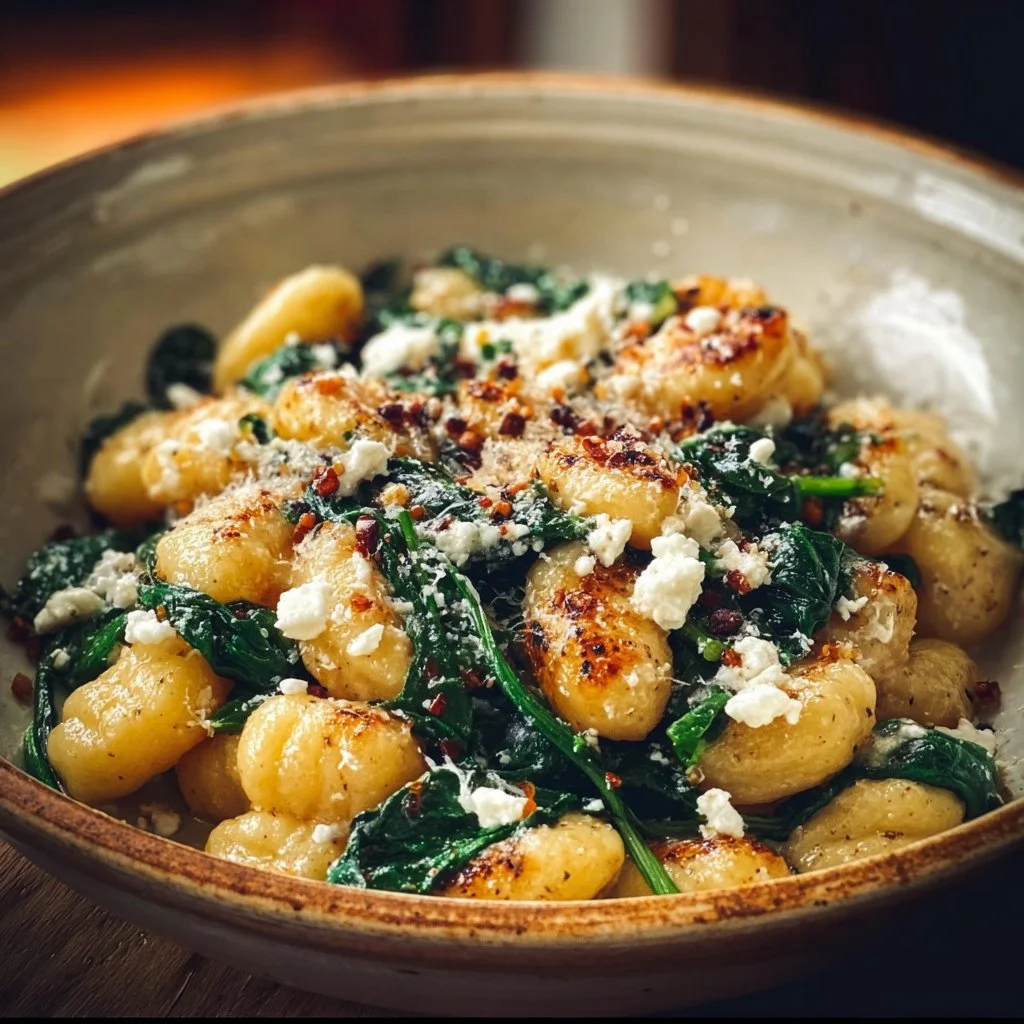 An indulgent yet comforting dish featuring gnocchi, spinach, and a creamy feta sauce that’s quick to prepare and perfect for family meals.