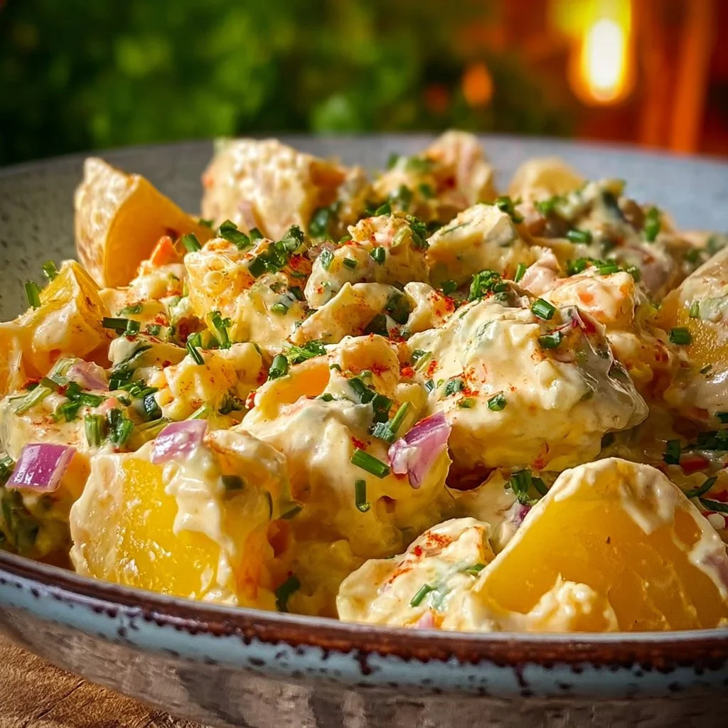 A delightful classic potato salad featuring creamy textures and fresh flavors, perfect for picnics and family gatherings.