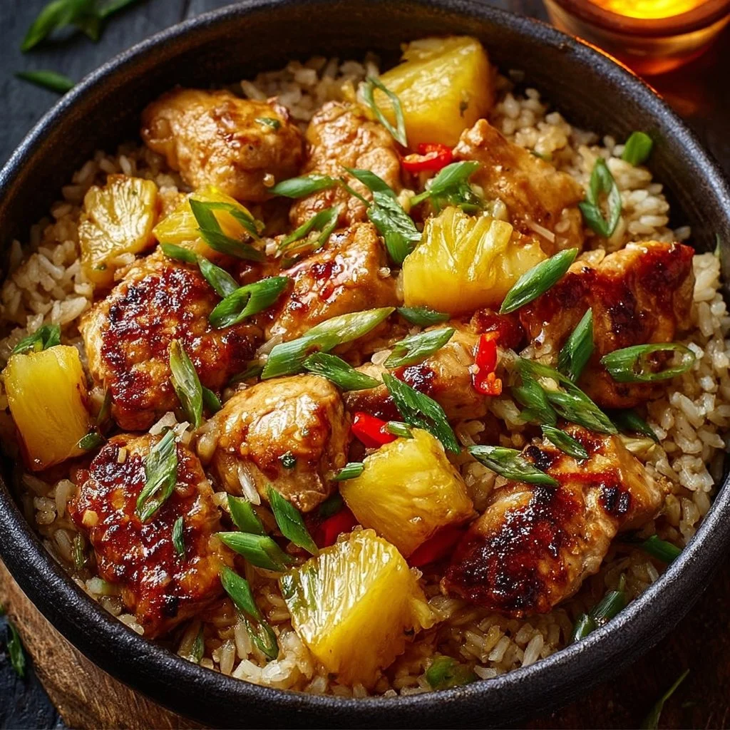 A delightful tropical dish that combines savory chicken, juicy pineapple, and vibrant veggies in one pot, perfect for weeknight dinners.