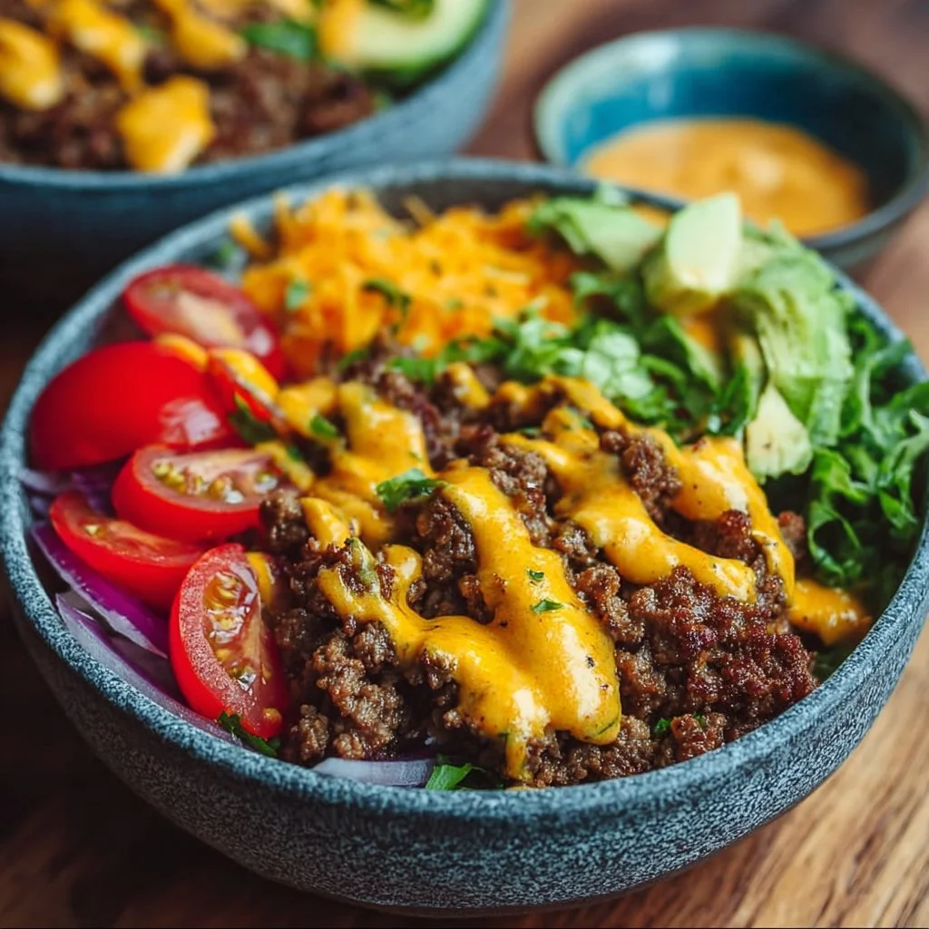 A delicious and healthy twist on the classic cheeseburger, this low-carb bowl is packed with flavor, protein, and fresh veggies, making it perfect for meal prep and family dinners.