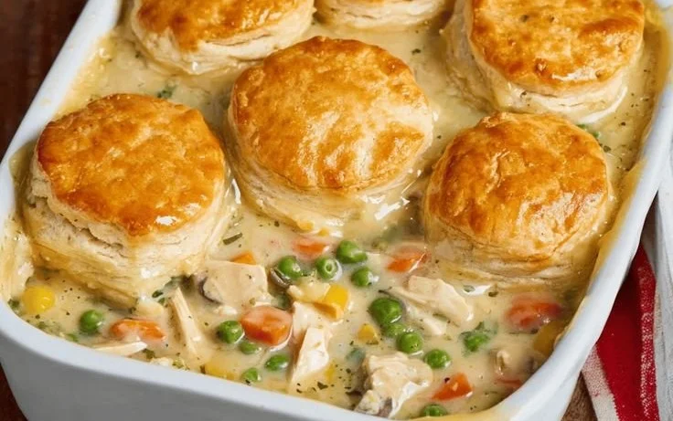 A comforting one-dish wonder that combines tender shredded chicken, mixed vegetables, and a creamy sauce, all topped with a flaky crust.
