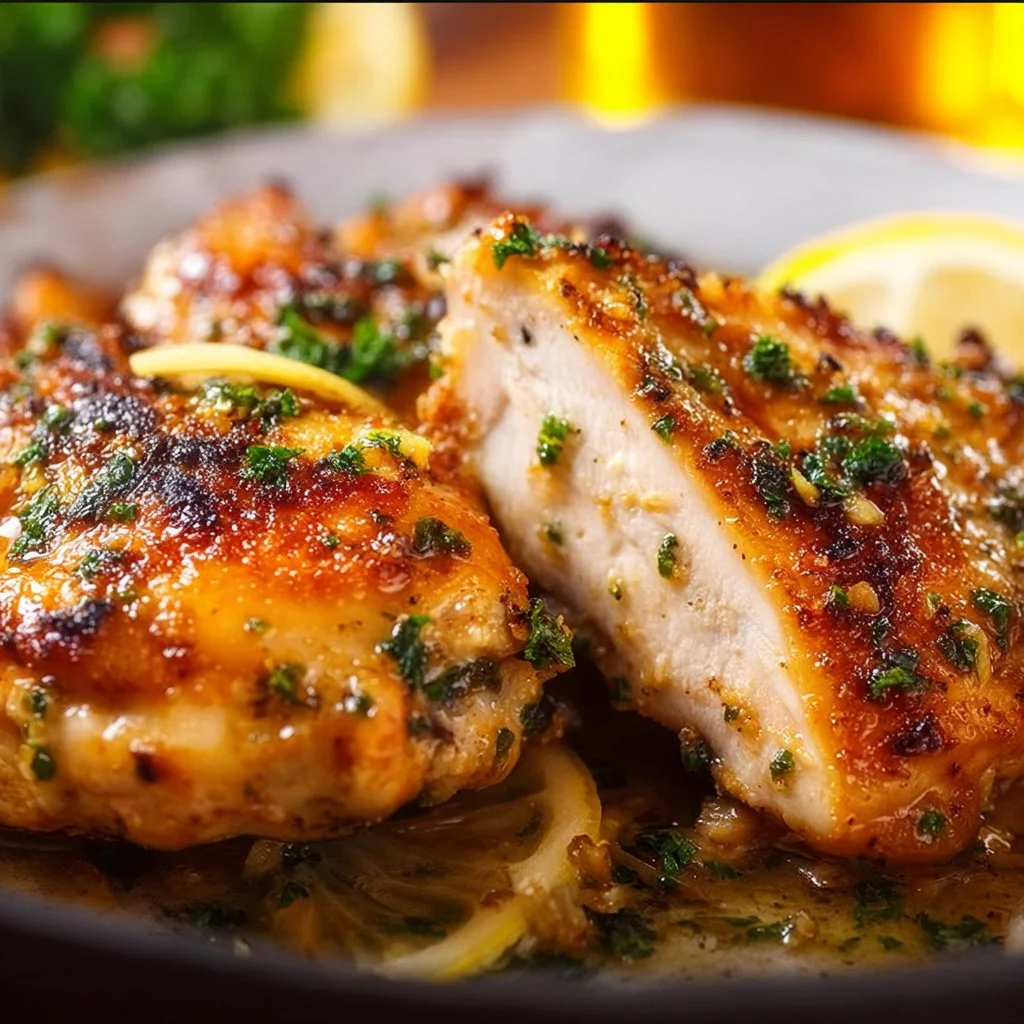 A quick and delicious dish that marries the zing of lemon with the deep aroma of garlic, transforming chicken breasts into a flavorful delight.