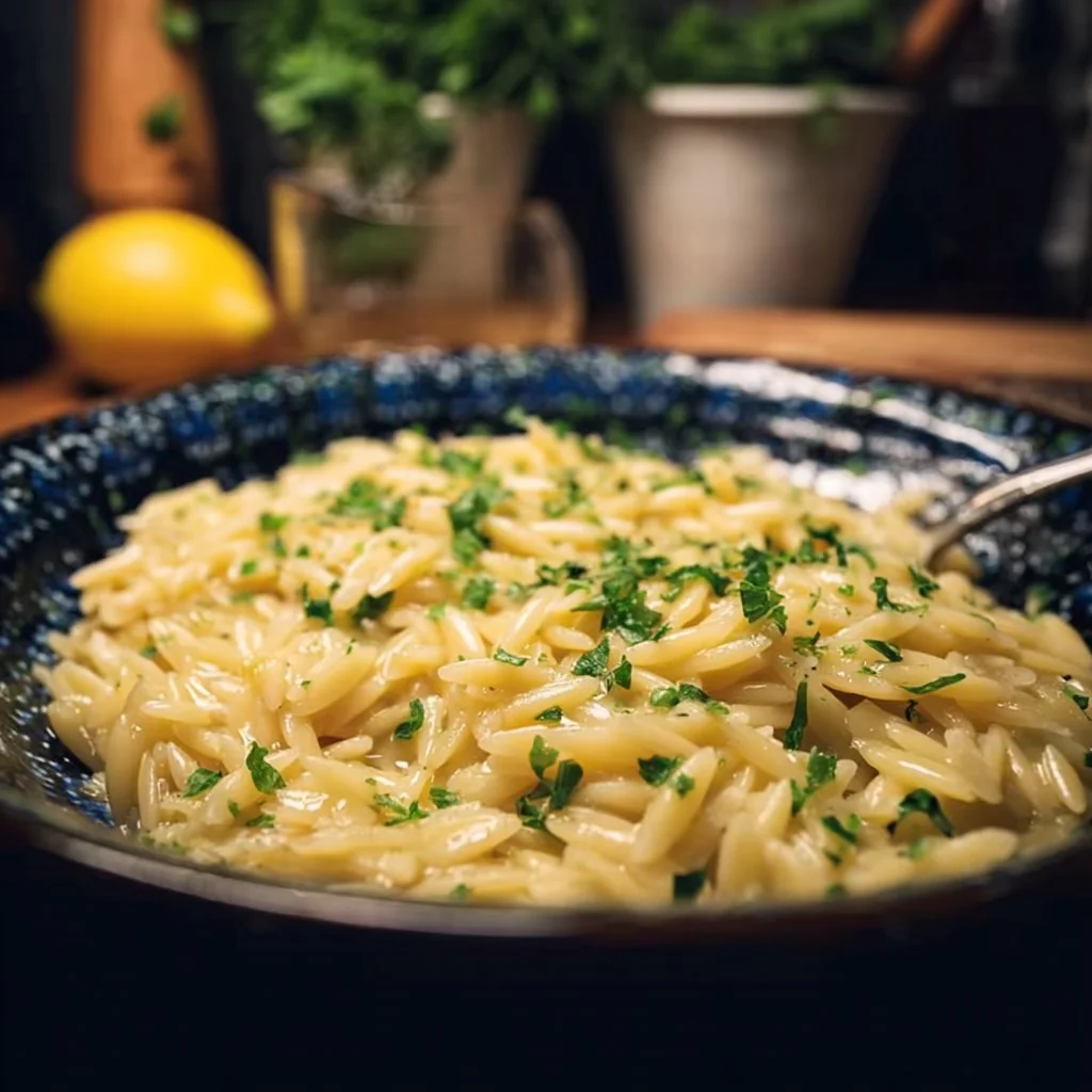 A delightful dish of creamy orzo pasta bursting with fresh lemon flavors and a comforting touch of parmesan, perfect for weeknights or family gatherings.