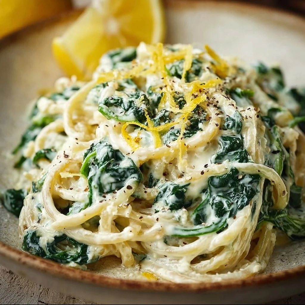 A delightful dish featuring zesty lemon, creamy ricotta, and nutritious spinach, perfect for quick weeknight meals.
