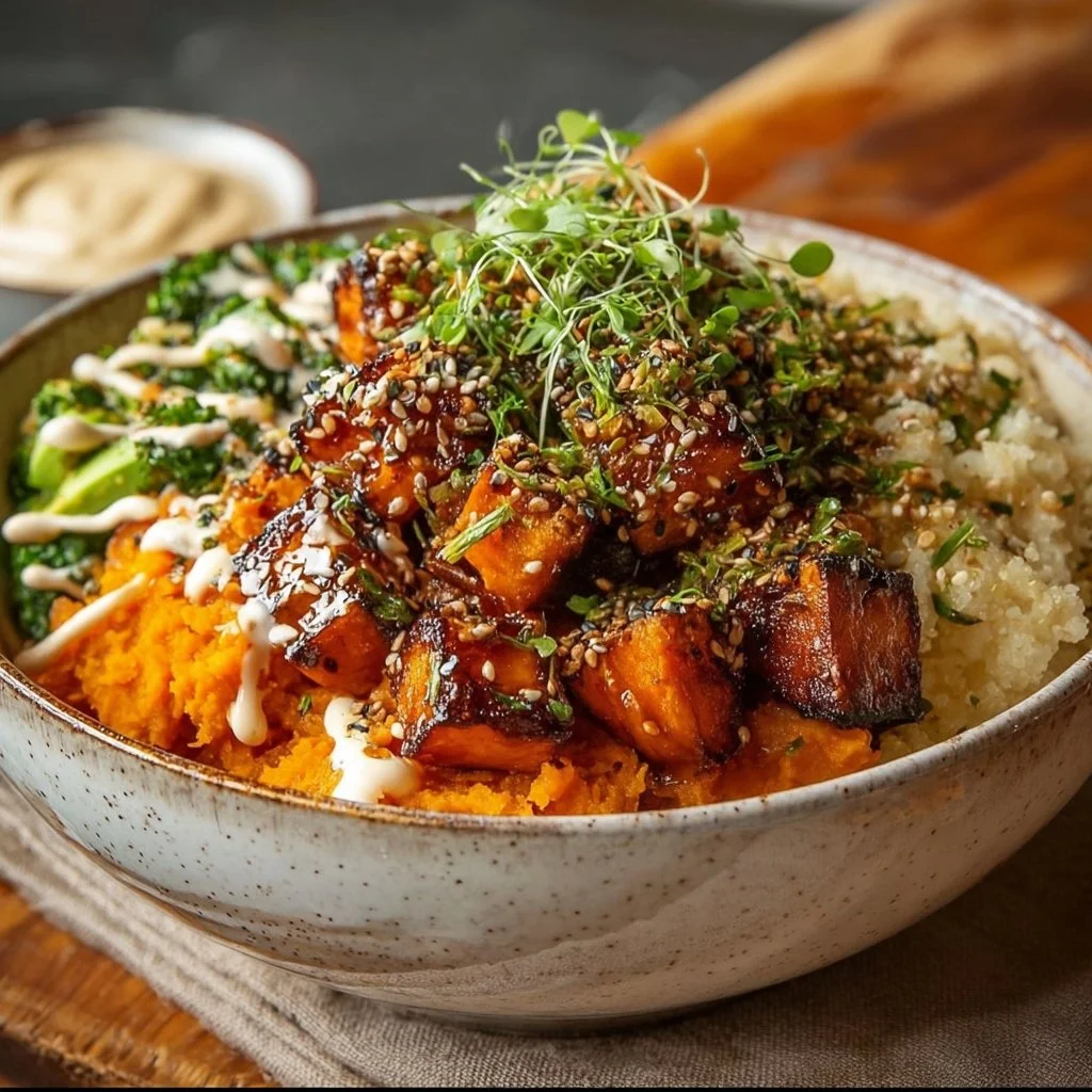 Indulge in a Miso Glazed Sweet Potato Bowl Experience