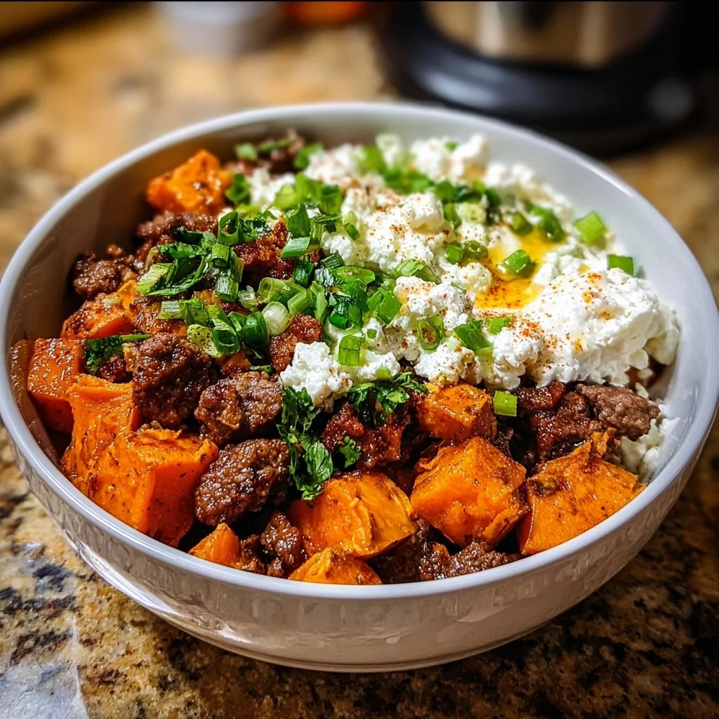 Sweet Potato Beef Bowl with Hot Honey and Cottage Cheese Recipe