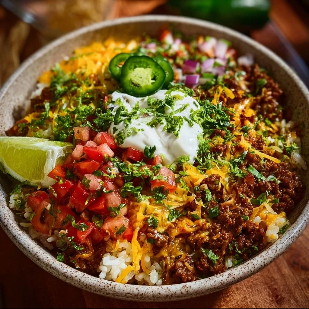 A colorful and customizable Taco Rice Bowl that combines hearty ingredients for a satisfying meal, perfect for busy weeknights or casual get-togethers.