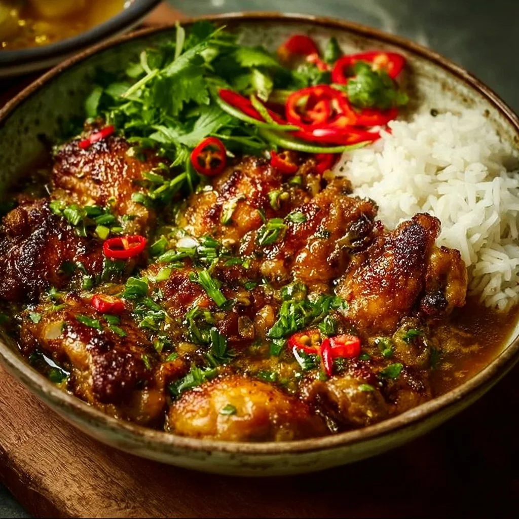 A quick and flavorful dish featuring tender chicken marinated in aromatic lemongrass and accompanied by savory sauces, perfect for busy weeknights or special gatherings.